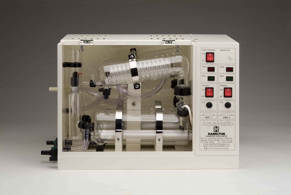 Tất cả các loại máy cất nước dạng tủ (cabinet) đều có thể được cung cấp dưới dạng một bộ hoàn chỉnh được lắp đặt trên bình chứa Hamilton 25 lít. Thêm tiền tố RS/25 vào số hiệu sản phẩm trong danh mục. Nếu cần, khách hàng có thể lắp thêm bình chứa vào máy cất hiện có nhưng phải gửi lại nhà máy của Hãng để lắp đặt. Máy cất Aquamatic có thể được sử dụng với bất kỳ loại bình chứa nào và không cần phải gửi lại nhà máy của hãng